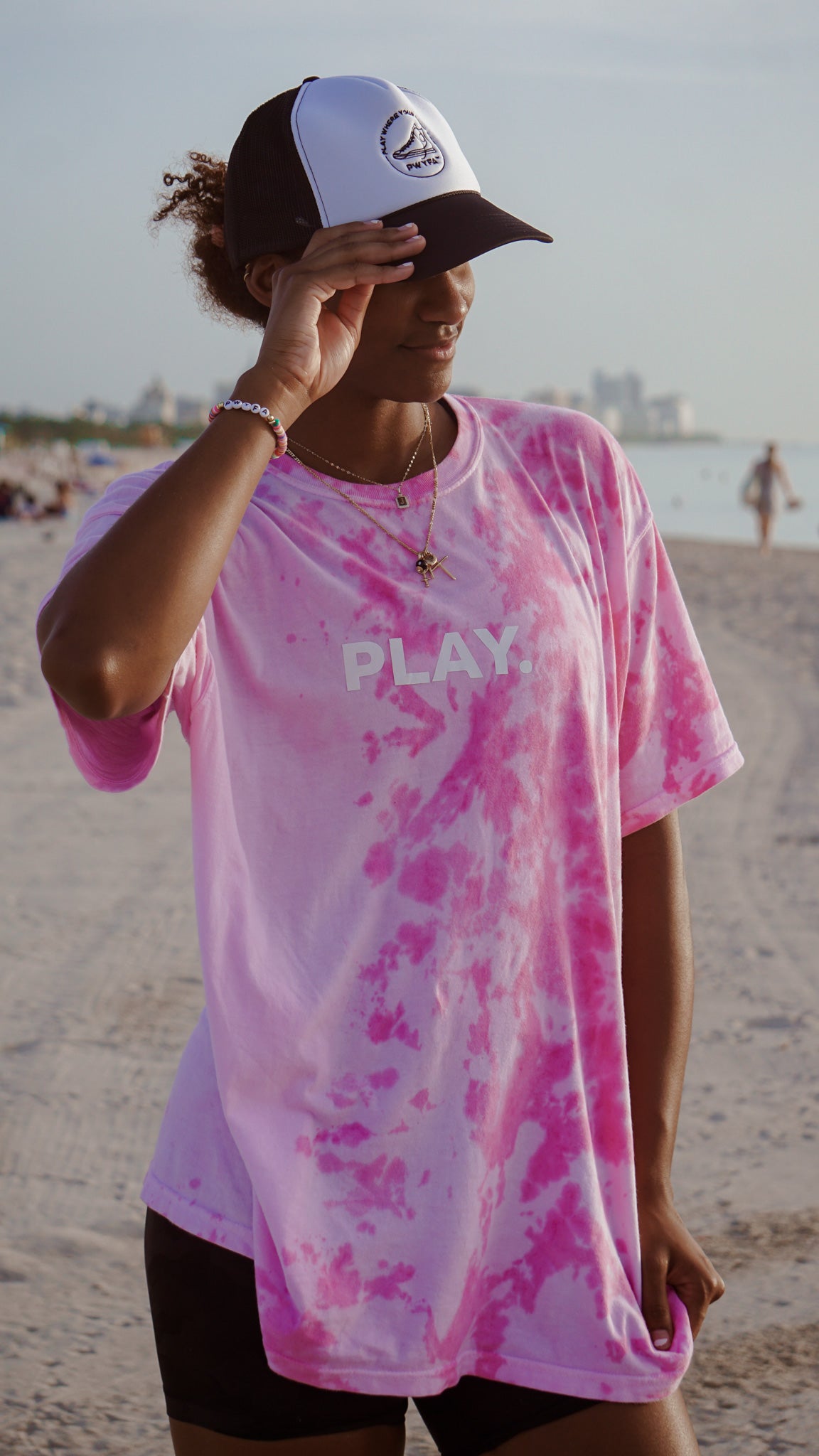 From the PINK collection, this is the shirt that encompasses it all! The "PLAY." shirt is a reminder to do just that -- play like a competitor with the joy of a child playing on a playground!