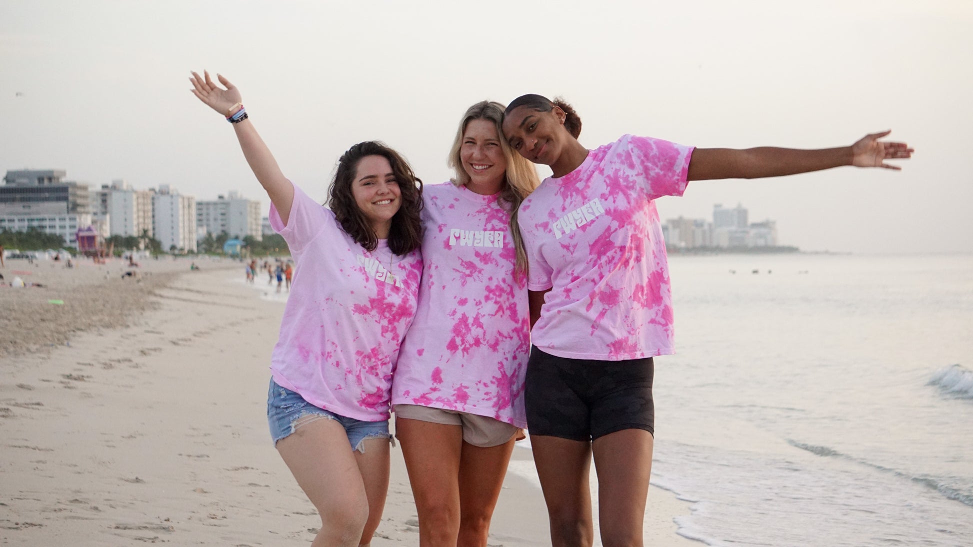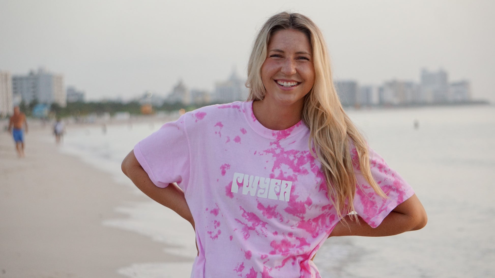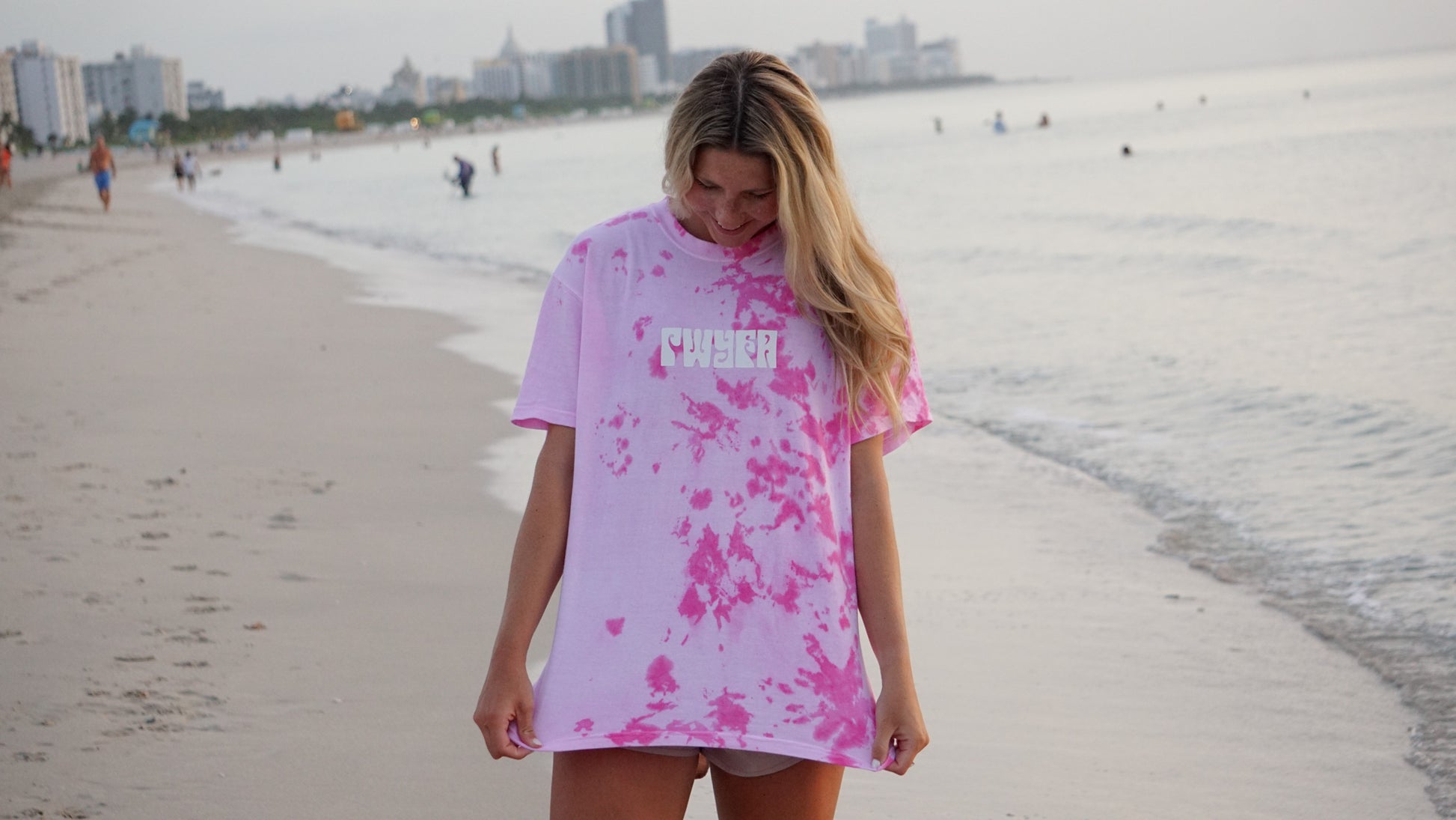The basic logo tee but make it PINK x PWYFA x GROOVY FONT!