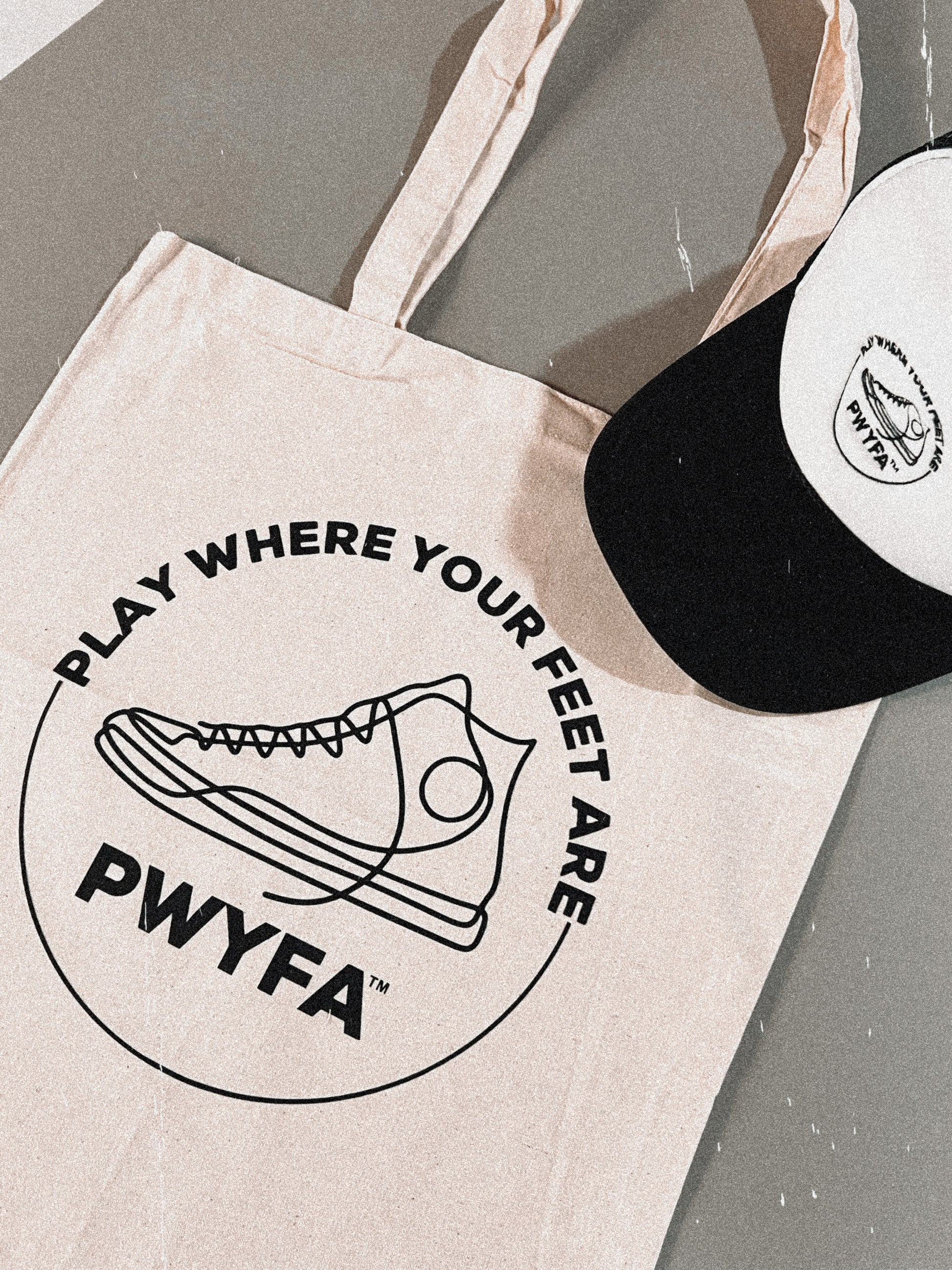 Share your own photos reppin' the PWYFA Play Where Your Feet Are™ merch and tag us on Instagram @playwhereyourfeetare #pwyfaplaywhereyourfeetare!